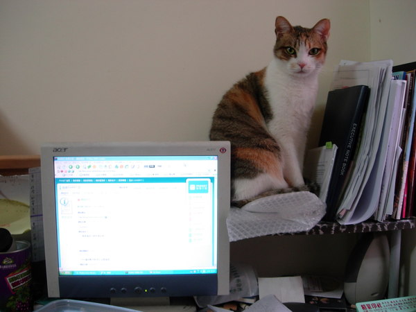 也可能是因為依依不在,沒有其他人陪他了,<br />最近他特別黏我,沒事就發出"恩"的聲音。<br />當我再用電腦的時候,如果我一直不理他,<br />它就會爬上電腦桌放資料的地方蹲在那邊一直看我,<br />好可愛阿.......<br /><img style="WIDTH: 342px; HEIGHT: 238px" height="386" src="http://pic.pimg.tw/nick0411/1201400764.jpg" width="387" /><!-- more -->
